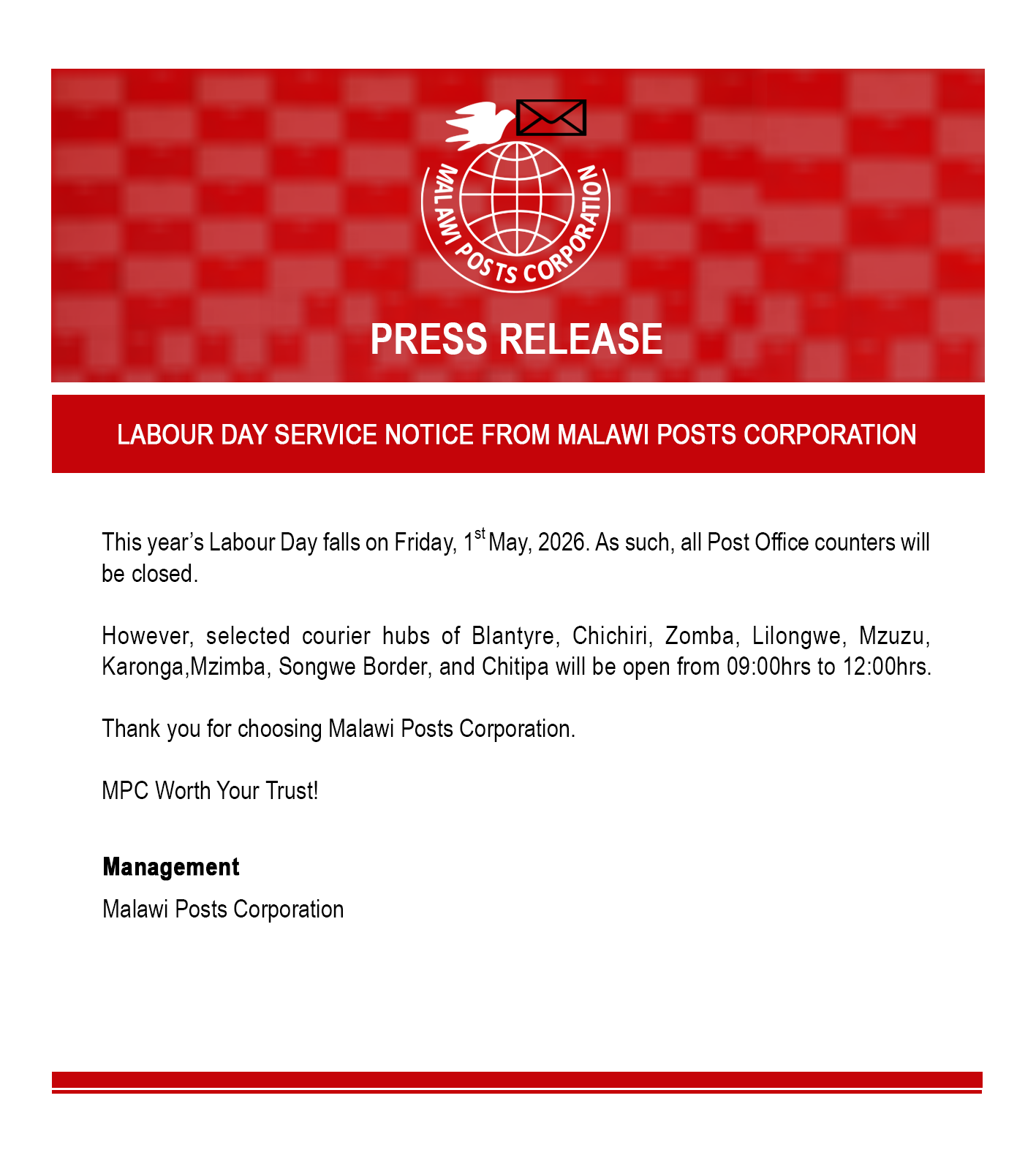 Read moreThe Board, Management and Staff of Malawi Posts Corporation (MPC) extend their heartfelt congratulations to Dr. Henry Shamu on his appointment as the new Postmaster General. Having previously served in…